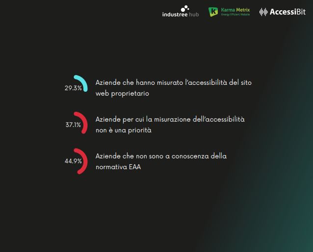 In generale, emerge che le aziende riconoscono l’importanza dell’accessibilità, ma che l’implementazione resta limitata. La normativa europea EAA è ancora poco conosciuta, creando un divario tra consapevolezza e azione.
