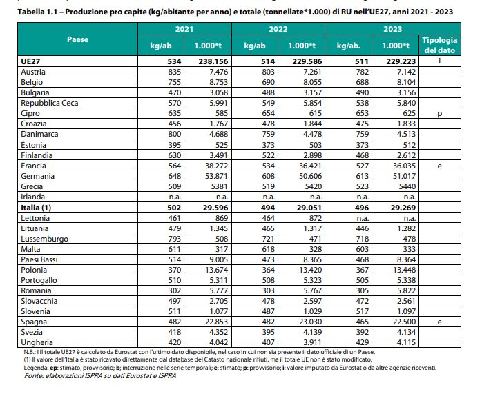 Nel 2024 gli italiani hanno prodotto 29,9 milioni di tonnellate di rifiuti urbani, con un aumento del 2,3% rispetto all’anno precedente. La buona notizia è che la raccolta differenziata ha raggiunto il 67,7%, superando il target europeo del 65%. Tuttavia, il riciclo effettivo – cioè la trasformazione dei rifiuti in nuove materie – si ferma al 52,3%, ancora sotto il 55% richiesto dall’UE per il 2025.