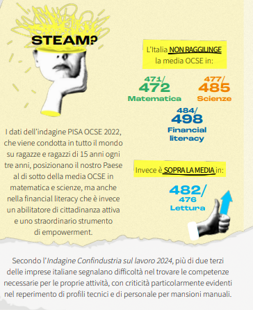 Le competenze STEM rimangono un aspetto essenziale e si promuove l’interesse per le discipline scientifiche e tecnologiche, con particolare attenzione all’inclusione di genere. Ma anche l’economia deve avere più spazio: si punta a sviluppare la consapevolezza e la capacità di gestire risorse in modo responsabile.