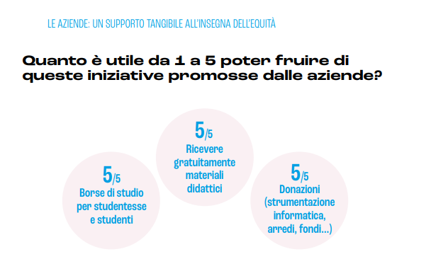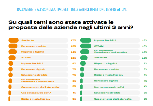 La maggior parte delle aziende, come evidenzia lo studio, considera i progetti per le scuole parte integrante della propria strategia di sostenibilità. Per le aziende, la collaborazione con le scuole è un’opportunità per incontrare le giovani generazioni e consolidare il ponte tra formazione e mondo del lavoro.